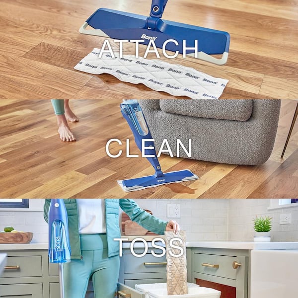 Bona’s Heavy-Duty Disposable Cleaning Pads combine convenience and superior performance to transform your cleaning routine into a breeze. Crafted with real microfiber and an unique 3D quilted texture, Bona’s disposable cleaning pads quickly absorb dirt, grime and pet messes – 5X quicker absorbency than the leading competitive heavy-duty disposable cleaning pad. Whether it’s a sudden spill or your regular cleaning routine, these pads are the prefect companion. Bona’s Disposable Cleaning Pads could not be easier – just attach, clean and toss. Bona’s Disposable Cleaning Pads are more sustainable than other options as well and are made of 90% post-consumer recycled material. Safe for use on all hard-surface floors like hardwood, LVT, laminate, tile and stone. Works with the Bona Family of Mops, Swiffer POWERMOP and many other competitive mops. Swiffer and POWERMOP are trademarks of The Procter and Gamble Company. Bona’s use of these trademarks does not imply any affiliation with or sponsorship or endorsement by the trademarks’ owner.