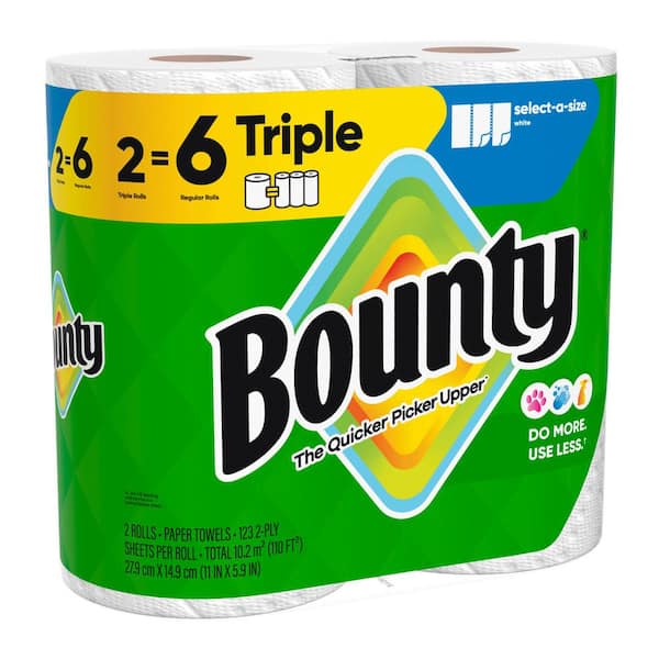 • Pack contains 2 triple rolls of white bounty select-a-size paper towels