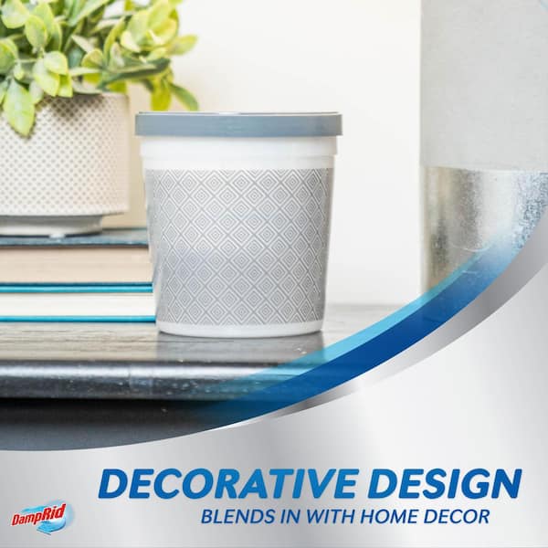 Don’t just cover up odors, eliminate them with DampRid refillable moisture absorbers. Think of DampRid as a dehumidifier that doesn’t need electricity. These moisture absorbers are a convenient, effective way to absorb excess moisture in the air that can cause stale, musty odors. DampRid refillable moisture absorbers contain 10% more moisture absorbing power compared to 10.5 oz. cups and last up to 45 days depending on temperature and humidity level. The decorative design blends in with home decor and they’re ideal for use in closets, bathrooms, laundry rooms, pantries, under sinks, and anywhere excess moisture and stagnant air are a nuisance. Keep out of reach of children. Do not use in moving vehicles. Do not allow product to contact leather or metal. Eye irritant. Harmful if swallowed.