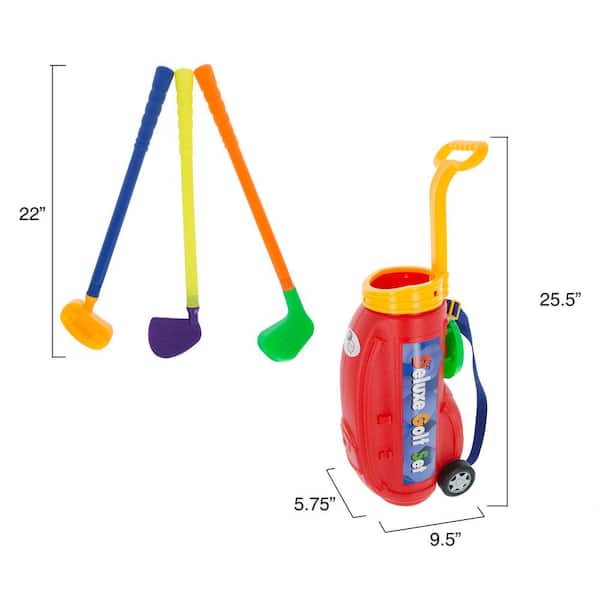 The Toddler Toy Golf Play Set Girls by Hey! Play! is the perfect beginning golf set to introduce your toddler to the game of golf. Everything your little pro will need is in this set, and because it is lightweight and easy to carry, it can be played inside or outside in the backyard, beach, or park.