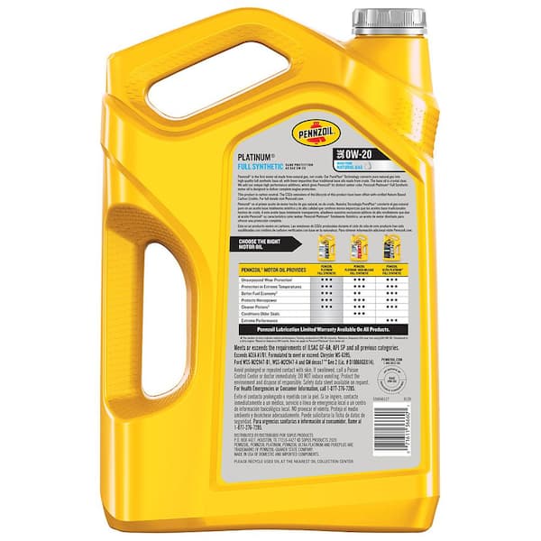 Pennzoil 5 qt. Pennzoil Platinum SAE 0W-20 Full Synthetic Motor Oil (Case of 3) 550046127