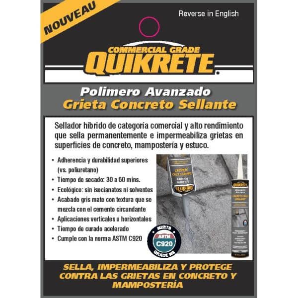Quikrete 10.1 oz. Concrete cracks Sealant is a construction grade cracks repair product specifically designed for repairing cracks in both horizontal and vertical concrete surfaces. It seals and waterproofs the cracks which helps to prevent further damage. Quikrete 10.1 oz. Concrete cracks Sealant remains flexible and extremely durable after it has dried.