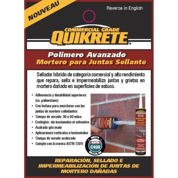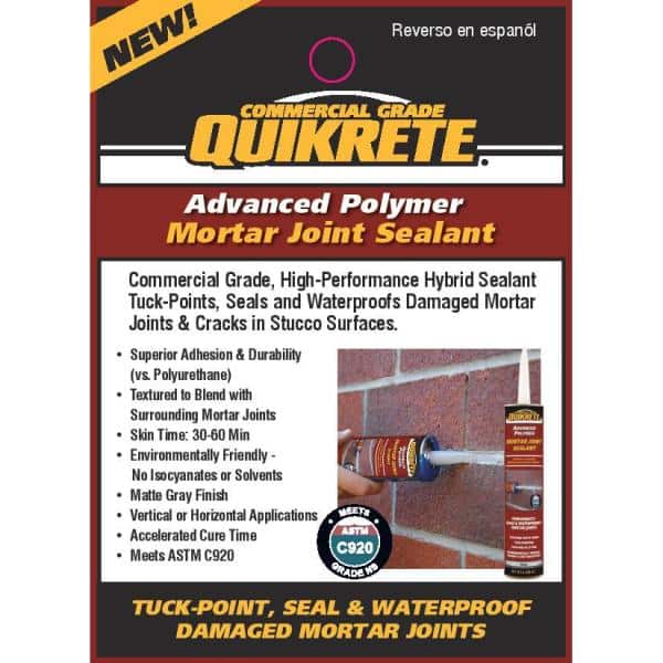 Quikrete 10.1 oz. Polyurethane Mortar Joint Sealant is a construction grade crack sealant specifically designed for repairing brick and block mason joint. It seals and waterproofs the crack which helps to prevent further damage. Quikrete 10.1 oz. Polyurethane Mortar Joint Sealant remains flexible and extremely durable after it has dried.