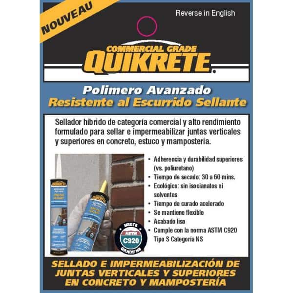 Quikrete 10.1 oz. Non-Sag Sealant is a high performance construction grade sealant designed for vertical and overhead surfaces. It is designed to seal expansion joints, around window and doorways and to seal cracks in concrete. Quikrete 10.1 oz. Non-Sag Sealant is an extremely durable waterproofing sealant that remains flexible after it has dried.
