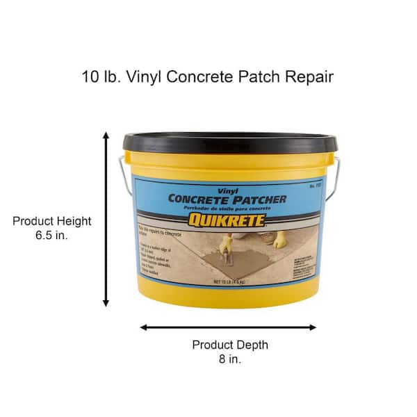 Quikrete 10 lb. Vinyl Concrete Patcher is ideal for making smooth repairs to crack or chipped concrete floors, sidewalks or steps. It has strong adhesive properties allowing it to be applied down to a featheredge. Quikrete 10 lb. Vinyl Concrete Patcher is made of a special blend of vinyl resin, fine sand and Portland cement.