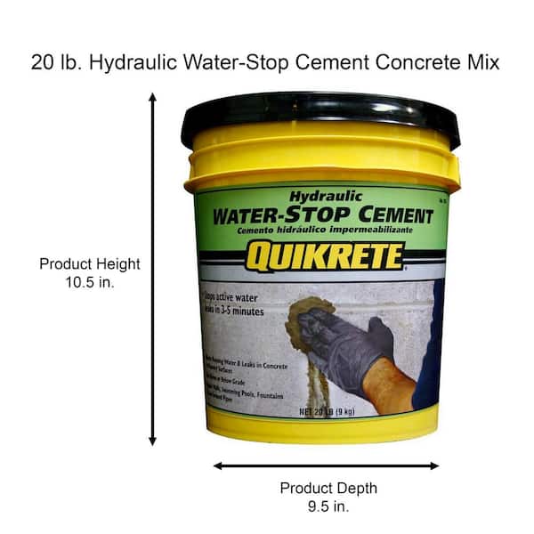 Quikrete 20 lb. Hydraulic Water-Stop Cement blocks running water and seals leaks in cracked masonry and concrete surfaces. It is suitable for above grade and below grade concrete and masonry repairs. Quikrete 20 lb. Hydraulic Water-Stop Cement sets very quickly enabling it to stop active water leaks.