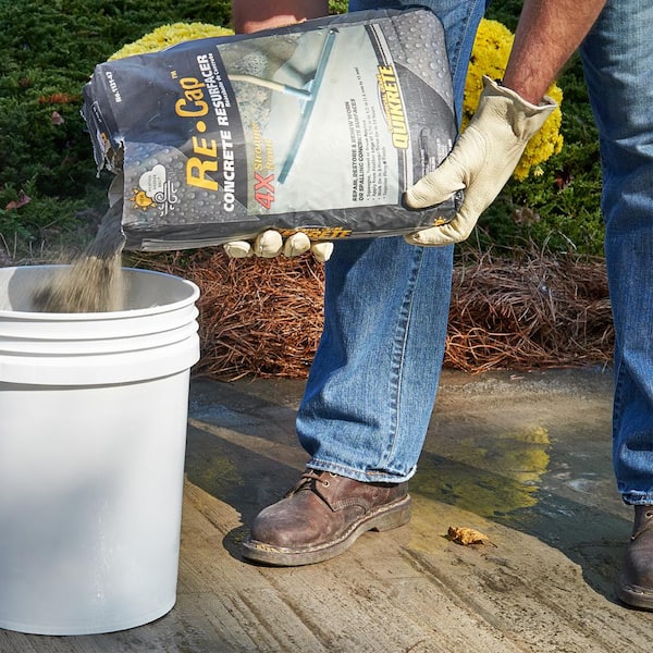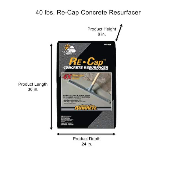 Quikrete 40 lbs. Re-Cap Concrete Resurface is a Polymer Modified Repair Product. It is designed for making a thin layer of repairs to and restoring the appearance of existing sound concrete surfaces. Quikrete 40 lbs. Re-Cap is designed to Repair, Restore, and Renew worn or spalling concrete surfaces.