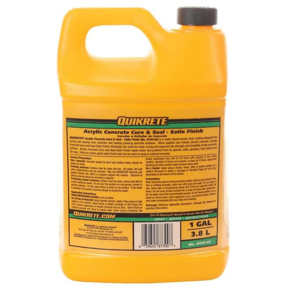 Quikrete 1 Gal. Acrylic Concrete Cure and Seal is water based clear acrylic coating for concrete and masonry surfaces. It seals and protects these surfaces to prevent staining and discoloration. Quikrete 1 Gal. Acrylic Concrete Cure and Seal eliminates the need for water curing freshly placed concrete.