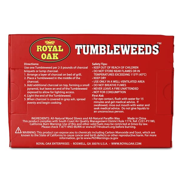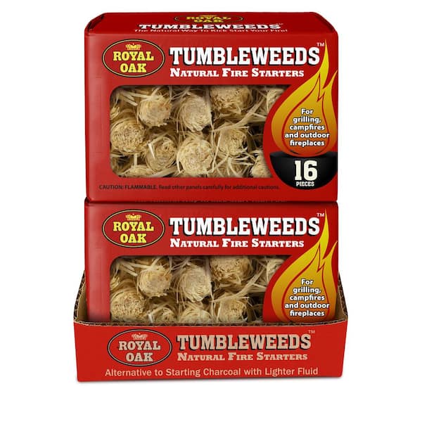 Royal Oak Fire Starters are an alternative starting method that work great in charcoal chimneys (for grilling), camp fires and outdoor fireplaces. Our tumbleweed firestarters are non-toxic and contain no petroleum odors. These can be used for lighting both charcoal briquets and natural lump charcoal.