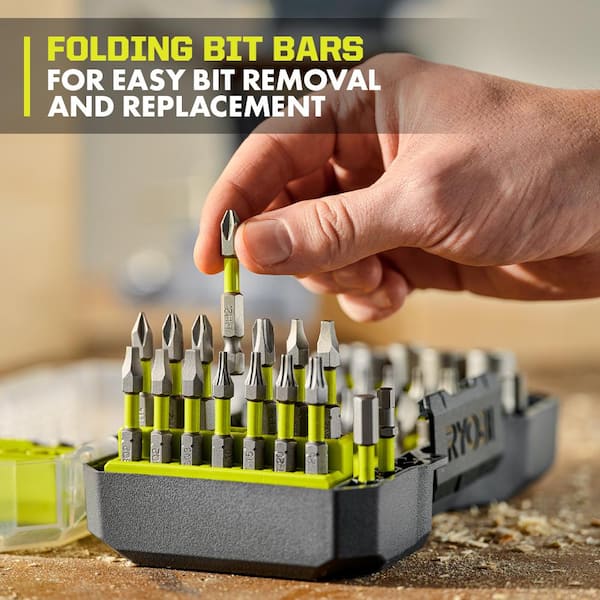 Enhance your driving accessories with RYOBI Diamond Grit Coated Technology. The RYOBI 52 PC. Impact Driving Set features diamond coated impact rated bits and additional impact rated bits that are perfect for all screw driving applications. Diamond Grit hardens bit tips for 20X longer life, 2X stronger grip and less stripped screws. The 2″ bits in this set feature a TORSION ZONE that absorbs the high torque from more demanding applications and helps to preserve bit tips, while the 1″ bits are ideal for use with the included magnetic impact screw guide. All bits and bit holders are impact rated and have a 1/4″ hex shank for use with impact drivers and drills. The accessory case is LINK Wall Rail compatible for added user convenience when storing your bits, while the clear lid and thoughtfully designed bit bars allow easy identification and quick bit removal and replacement. Additional storage located on the edge of the case accepts 1″ and 2″ drive bits for easy access. You can also add complementary bits to your case using compatible bit bars for ultimate case customization tailored to your specific project. The RYOBI 52 PC. Impact Driving Set with Diamond Grit Bits is compatible with all standard drills and impact drivers and includes (12) assorted Diamond Grit impact driving bits, (39) assorted standard impact driving bits and (1) magnetic impact screw guide.