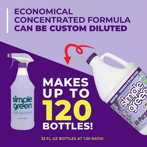 EPA Safer Choice Certified Simple Green Lavender All-Purpose Cleaner is a powerful cleaner and degreaser designed for effective and environmentally safer use on all washable surfaces. The biodegradable* formula easily removes tough dirt and grime without chemicals that can harm people and the environment. Concentrated formula provides up to 30x the cleaning value. Use it full-strength for heavy messes, or easily dilute with water for daily cleaning. Removes built-up dirt, grease, food spills, ink, pet stains and other tough grime indoors and out. For use as a floor cleaner, bathroom cleaner, kitchen cleaner and more. Use on carpets, walls, countertops, appliances, furniture, fabric, and tools. This versatile, multi purpose cleaner can easily replace a cabinet full of harsh cleaning products, detergents, degreasers and laundry pre-soaks, making clean-up simple and safer. Leaves behind a refreshing lavender scent. *This formula is readily biodegradable per OECD 301D. Backed by our 100% money-back guarantee.