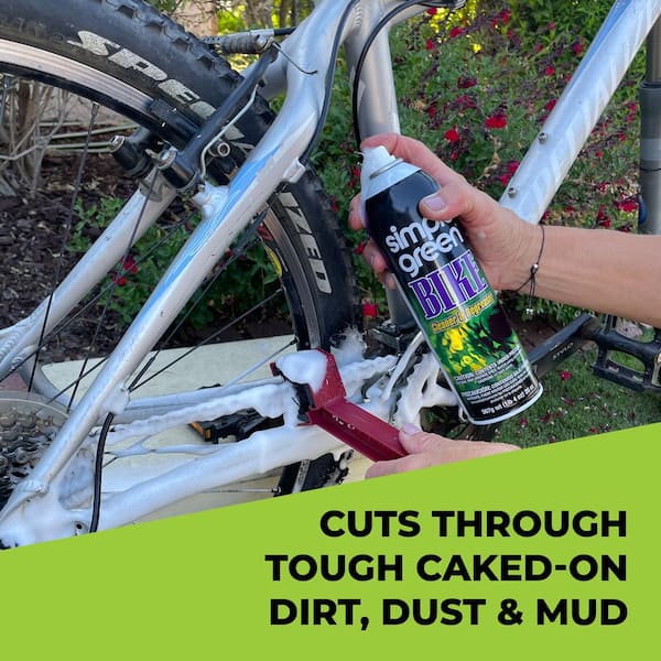 Simple Green Bike Cleaner and Degreaser is a high-performance cleaner formulated to meet the cleaning needs of today’s riders. It cuts through tough, caked-on mud, dirt, grease, grime, and other road and trail soils without harm to bike surfaces. Use on all bike parts including metal, rubber, plastic, painted surfaces and delicate components including chains and derailleurs. The aerosol foaming formula sticks to surfaces while removing grease, oil, dirt and road grime and provides excellent vertical clinging power for hard-to-reach spaces. Delivers powerful cleaning without harsh chemicals that can damage parts.