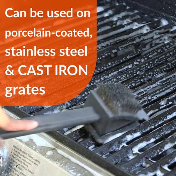 Simple Green Heavy-Duty BBQ & Grill Cleaner removes grease build-up, baked-on food and carbon deposits on grates, stainless steel, smokers, aluminum, enameled or painted surfaces, vinyl covers, and more. The easy-rinse formula doesn’t leave harsh chemicals behind on cooking surfaces. Aerosol foam clings to vertical surfaces and hard-to-reach areas and contains no added color or scent..