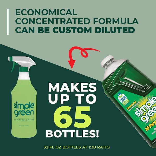 EPA Safer Choice Certified Simple Green All-Purpose Cleaner is a powerful cleaner and degreaser designed for effective and environmentally safer use on all washable surfaces. The biodegradable* formula easily removes tough dirt and grime without caustic chemicals that can harm people, pets, and the environment. Concentrated formula provides up to 30x the cleaning value. Use it full-strength for heavy messes, or easily dilute with water for daily cleaning. Removes built-up dirt, grease, food spills, ink, pet stains and other tough grime indoors and out. For use on floors, carpets, walls, countertops, appliances, furniture, fabric, tools and more. This versatile cleaner can easily replace a cabinet full of harsh cleaners, detergents, degreasers and laundry pre-soaks, making clean-up simple and safer. Leaves behind a fresh sassafras scent. Kit includes one bottle of Simple Green All-Purpose Cleaner, a 32 oz. reusable spray dilution bottle, and one microfiber towel. *This formula is readily biodegradable per OECD 301D. Backed by our 100% money-back guarantee.