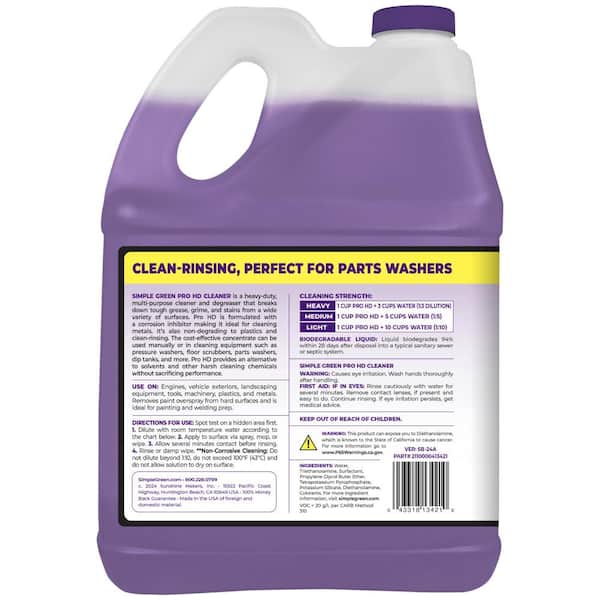 Simple Green Pro HD is a heavy-duty cleaner and degreaser that breaks down tough grease and grime. This powerful formula is a great degreaser for engines and removes dirt and stains from a wide variety of surfaces including car exteriors, tools, machinery, floors, walls, and more. Formulated with a corrosion inhibitor making it an ideal metal cleaner and aluminum cleaner. It’s also non-degrading to plastics and clean rinsing. The cost-effective multi purpose cleaner concentrate can be custom diluted for specific cleaning jobs and used in pressure washers, carpet cleaners, floor scrubbers, ultrasonics, dip tanks, and other cleaning equipment. Pro HD provides an effective alternative to solvents and other harsh cleaning chemicals without sacrificing performance.