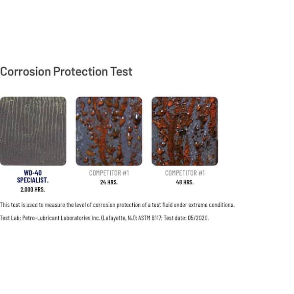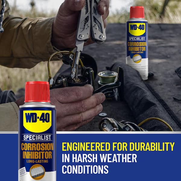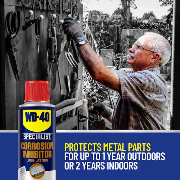 WD-40 SPECIALIST Long-Lasting Corrosion Inhibitor is a long-term rust preventative that protects metal parts, blocking rust and corrosion for up to 1-year outdoors or 2-years indoors. WD-40 SPECIALIST Long-Term Corrosion Inhibitor is an anti-rust spray ideal for preventative maintenance and use in extreme environments such as high humidity. It provides non-drying protection that stays where you spray it. The formulation in this corrosion inhibitor helps coat metal parts to lubricate and protect against rust and corrosion. Recommended for preventative maintenance or for protection in corrosive environments, such as hot and highly humid or cold and Wintery atmospheres. Included straw creates a precision stream of lubricant for controlled application and fastens to the notched cap for secure storage. Whether you need the original blue and yellow can with thousands of uses or a WD-40 SPECIALIST penetrating oil, lubricant, cleaner or solution to protect against or remove rust, we’ve got you covered. Get the job done right with a range of products.