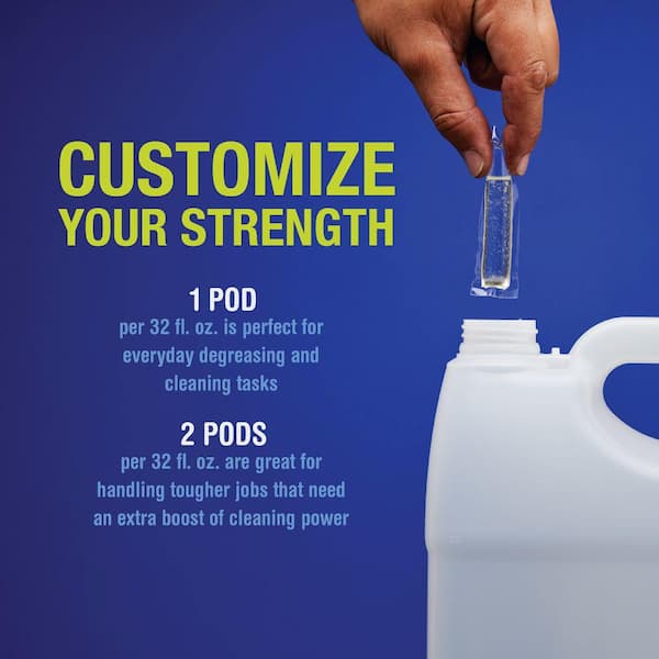 WD-40 SPECIALIST Degreaser and Cleaner EZ-PODS, with a concentrated, industrial-strength formula, are the newest and easiest way to customize cleaning strength to your needs – from sensitive surfaces to the toughest mess. For everyday degreasing jobs, simply drop 1 EZ-POD in 32 oz. of water in the container of your choice or add a second for even stronger degreasing power. Use on automotive parts, shop floors, industrial machinery, commercial appliances, even food processing equipment and facilities, for a variety of degreasing needs. They’re also safe to use on sensitive surfaces like plastics, rubber, neoprene, stainless steel, carbon fiber, copper, aluminum, chrome and painted areas. Perfect for on-the-go, EZ-PODS solve nearly all your degreasing needs from 1 convenient pouch. They’re compact, durable and ready to mix and go.