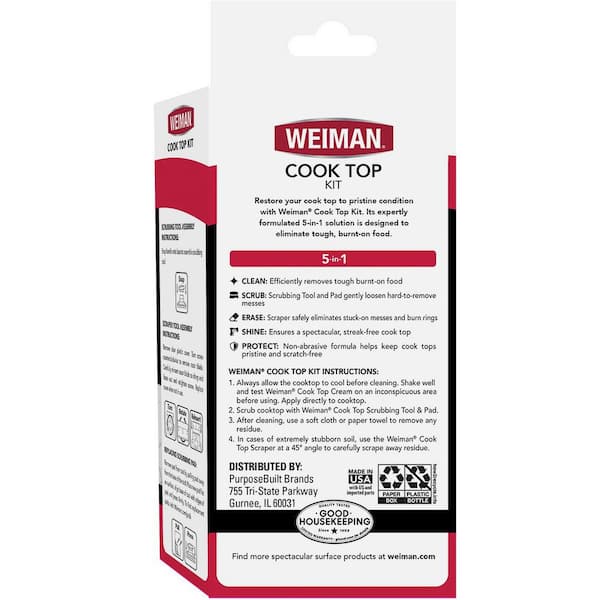 Weiman Cook Top Heavy-Duty Cleaner and Polish in 1 simple kit. It has everything you need for stubborn food and residue removal. Kit includes Cook Top Heavy-Duty Cleaner and Polish, Scrubbing Pad and Cook Top Cleaning Tool.