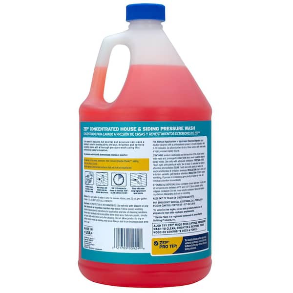 ZEP House and Siding Pressure Wash is a concentrated formula specially designed for use in pressure wash machines with downstream injectors. Formula aggressively removes dirt and stains caused by algae, mold, mildew and other sources of soils. Concentrate can be used as a pressure washer cleaner on vinyl, wood, aluminum, fiber cement (Hardie plank), hard coat stucco and brick.